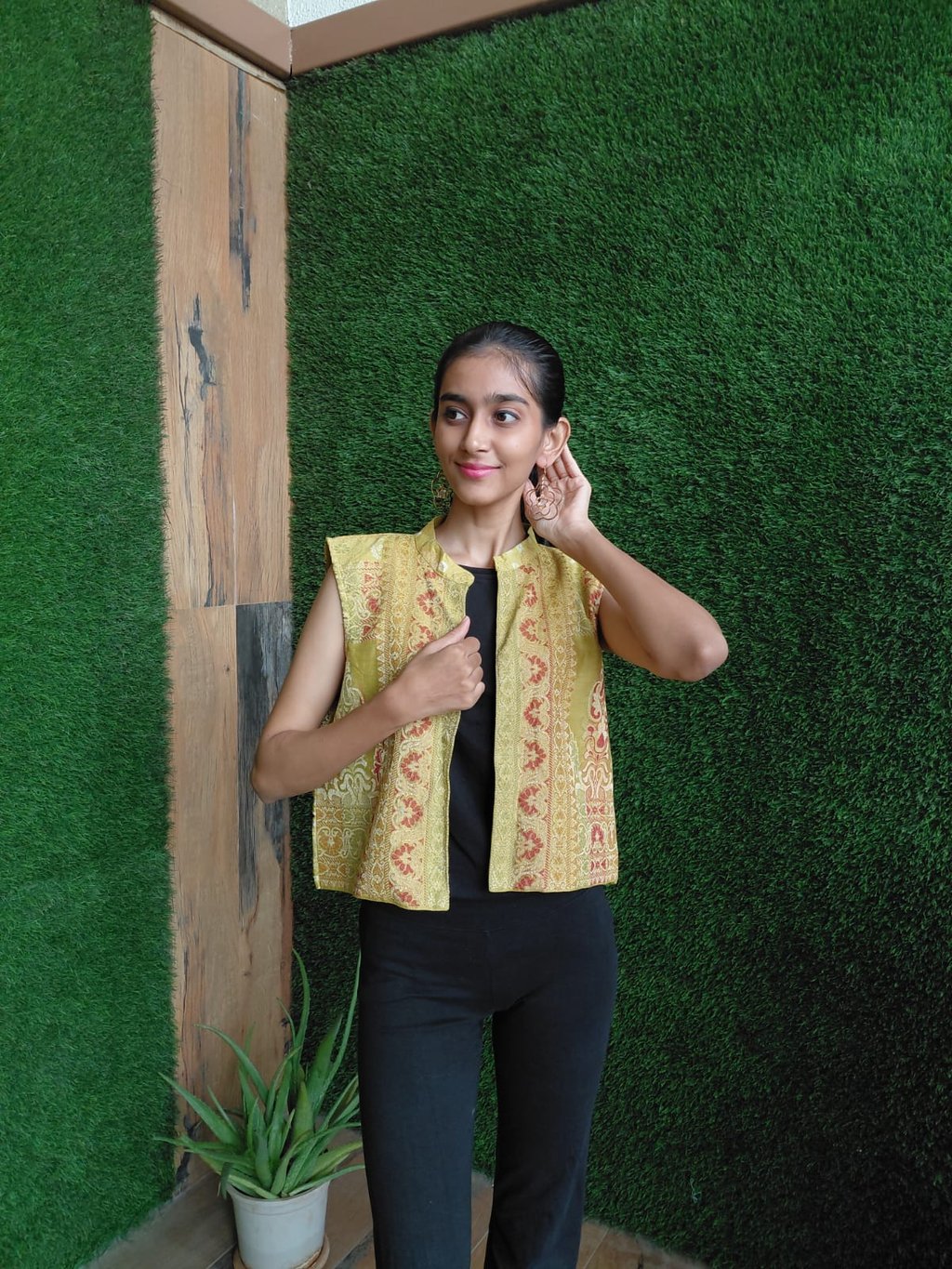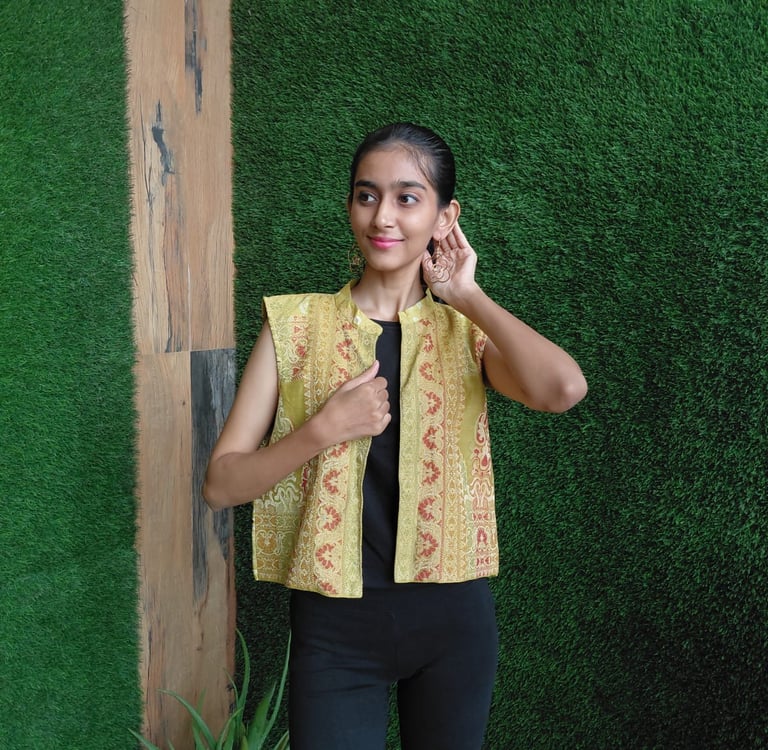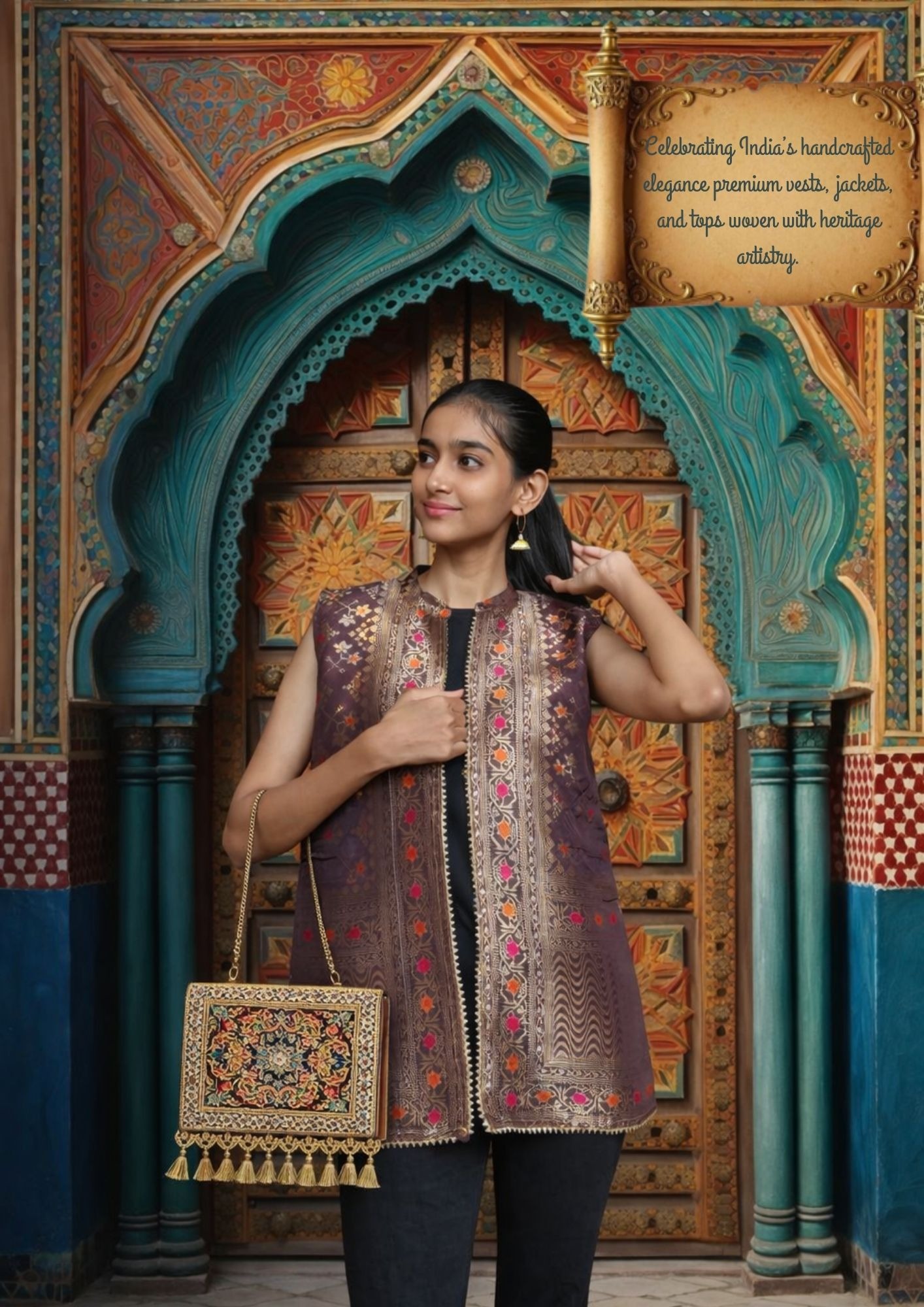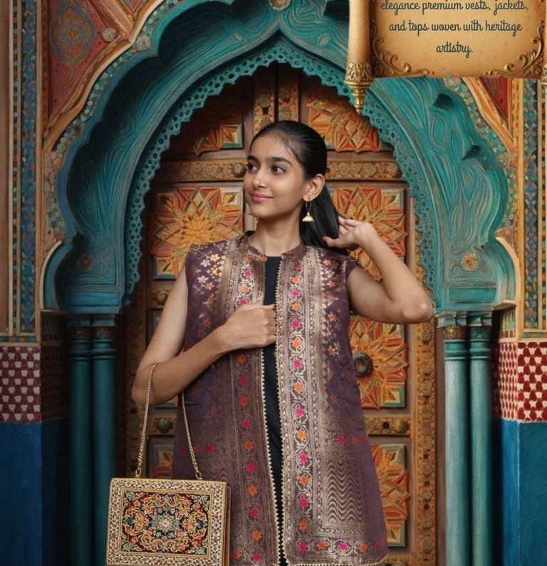 Celebrating India’s handcrafted elegance premium vests, jackets, and tops woven with heritage artistry.