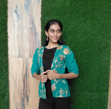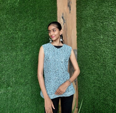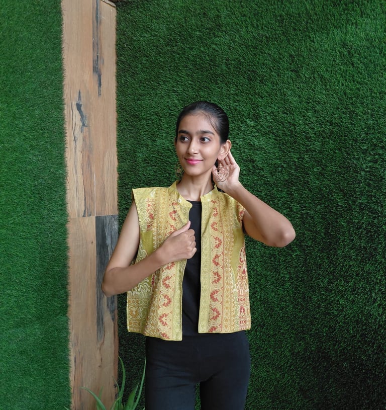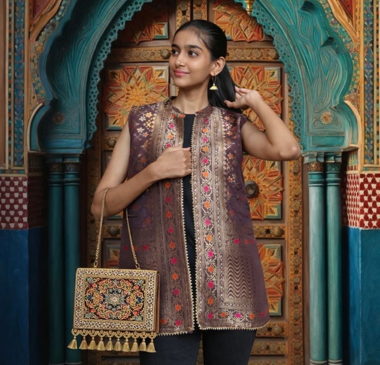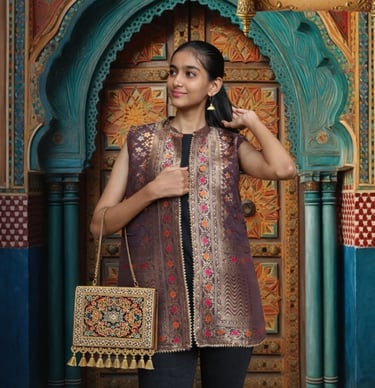 Celebrating India’s handcrafted elegance premium vests, jackets, and tops woven with heritage artistry.
